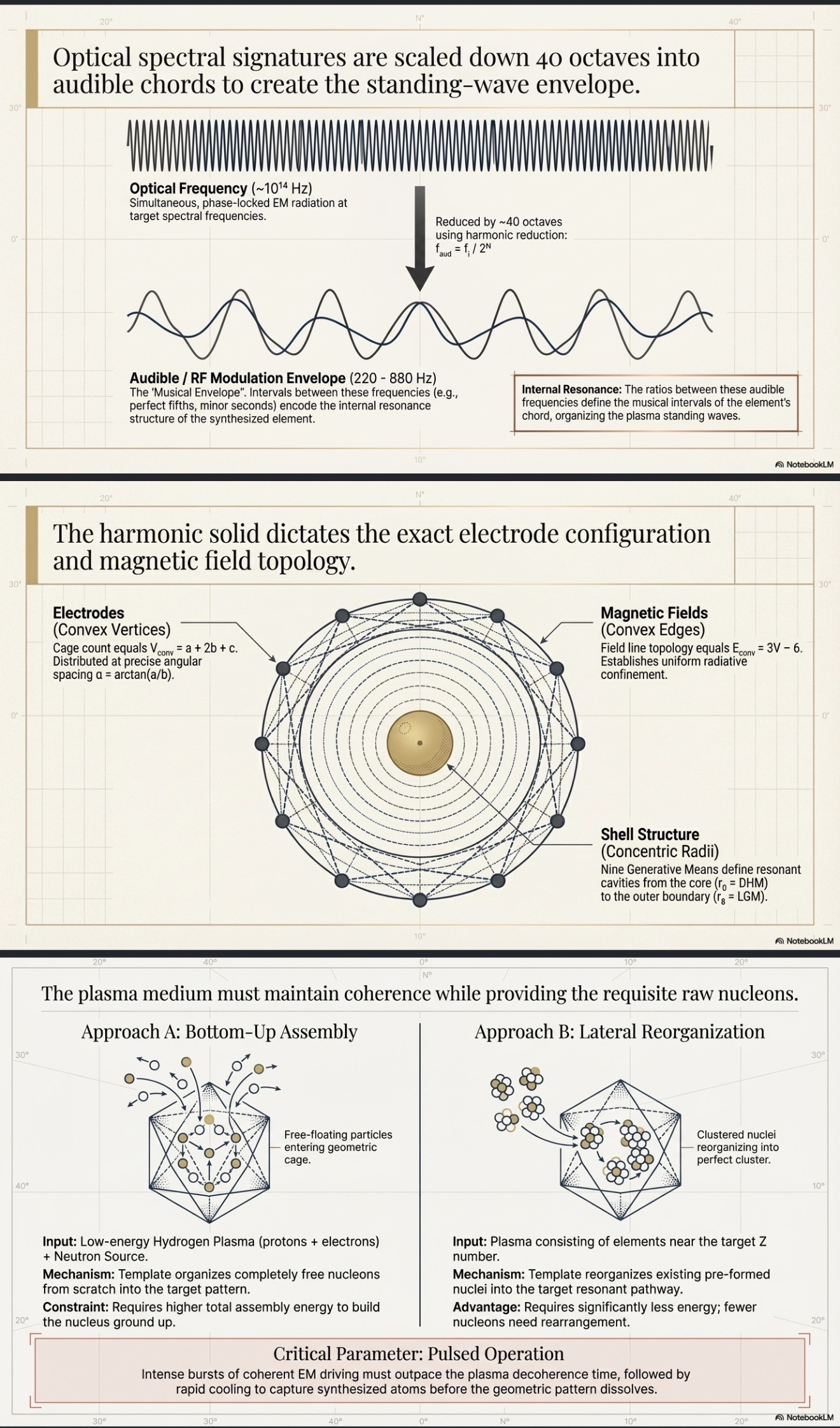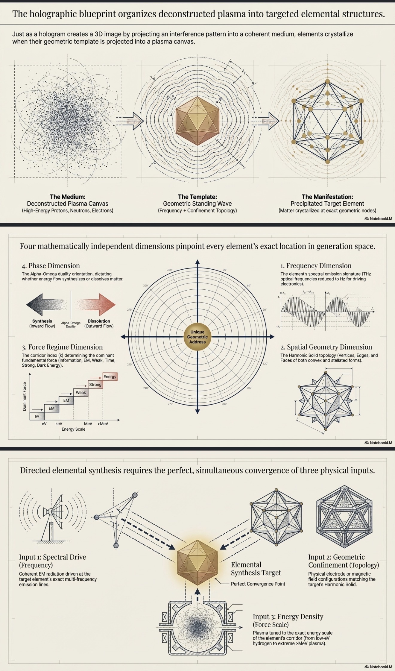 The Periodic Elemental Polyhedra framework provides, for the first time, a complete geometric specification for every element: exact frequencies, connement topology, shell structure, and force regime. If matter is fundamentally a standing-wave pattern rather than an assembly of particles, then imposing the correct pattern onto a deconstructed medium (plasma) should cause the target element to precipitate at the geometric node.